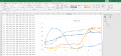 هر کدام از منحنی های رنگی این چارت با استفاده از مقادیر ستون A به عنوان series x value و یکی از ستون های بعدی به عنوان series y value ترسیم شدند.